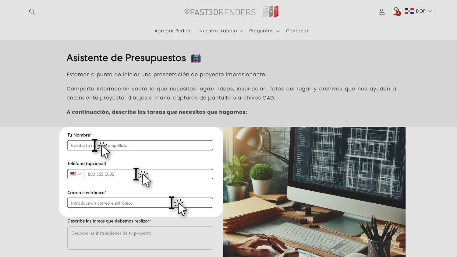 A continuación, te explicaremos paso a paso, cómo hacer un pedido en Fast3DRenderers.com